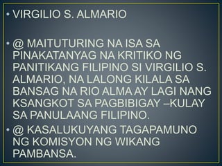 Mga Kritikong Pilipino Sa Panitikang Pilipino