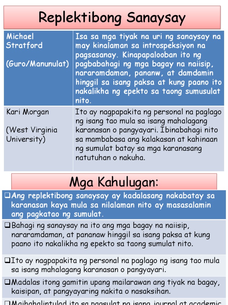 Replektibong Sanaysay By M Lopez Pdf